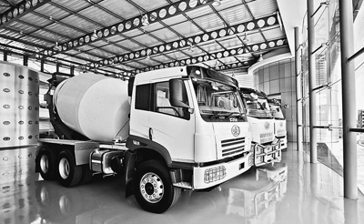 在中国一汽制造南非有限公司位于约翰内斯堡的4S店内,一辆辆崭新的一汽卡车整齐地排列着。